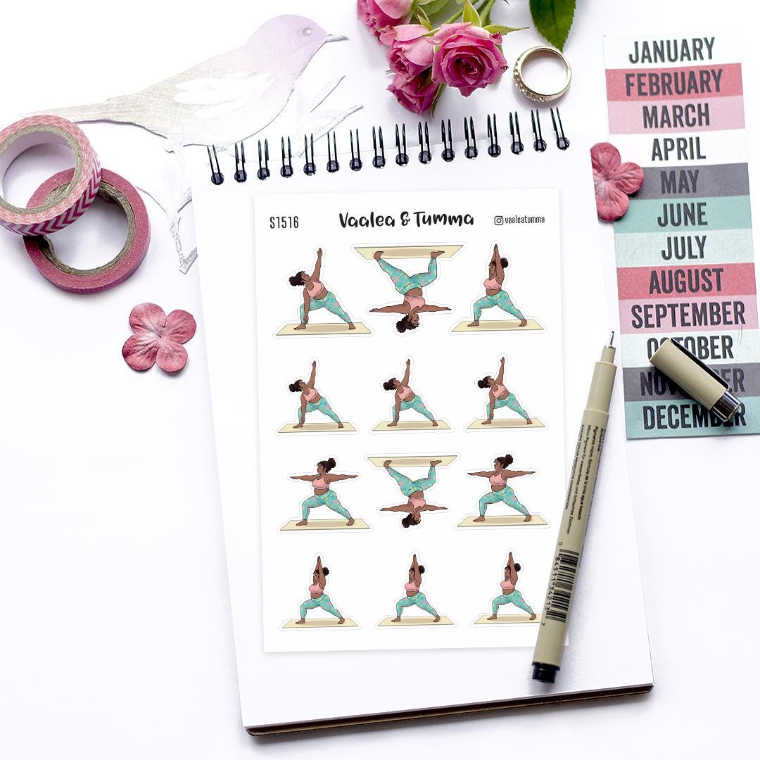Embrace your strength and find your flow with these Plus Size Yoga Stickers. Featuring Jada practicing her warrior poses with confidence and grace, this set celebrates the fact that yoga is for every body. Perfect for tracking your practice, mindfulness sessions, and fitness journey in your planner.
