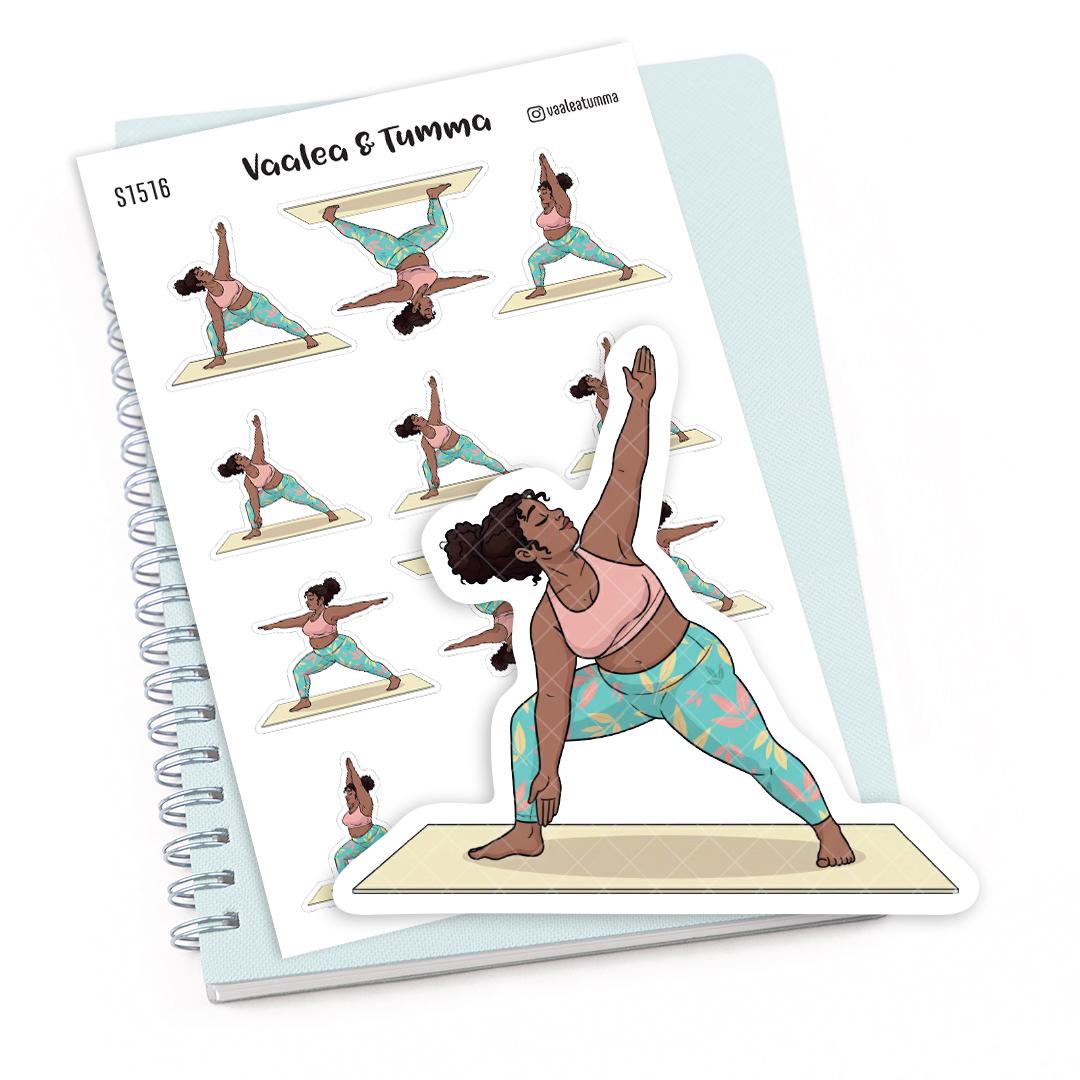 Plus Size Yoga Stickers, Curvy Black Girl Fitness, Body Positive Art, African American Wellness, Workout Tracker, Joyful Movement, Jada - S1516