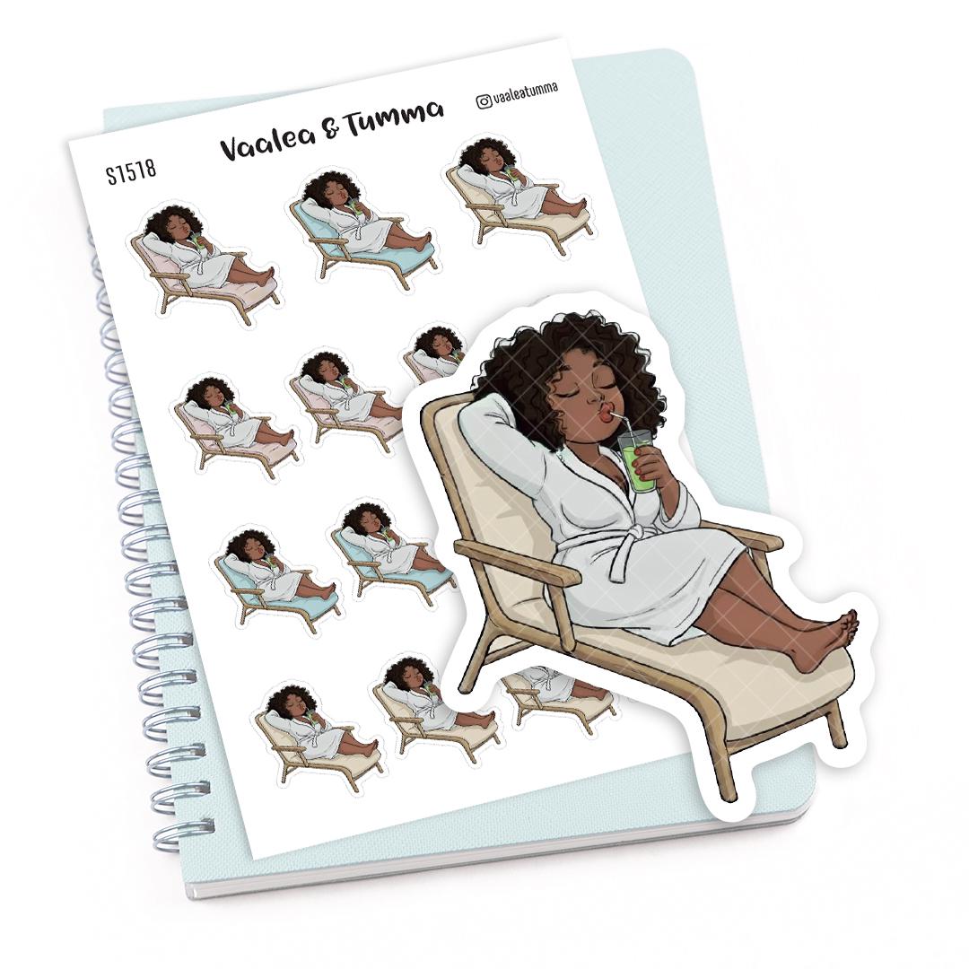 Spa Day Planner Stickers, Plus Size Wellness, Relaxing Poolside, Self Care Art, Curvy Black Girl, Detox Drink, Vacation Mode, Jada - S1518