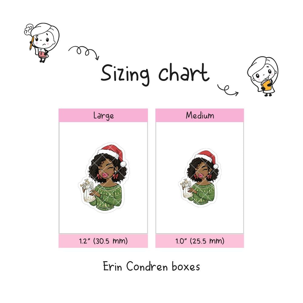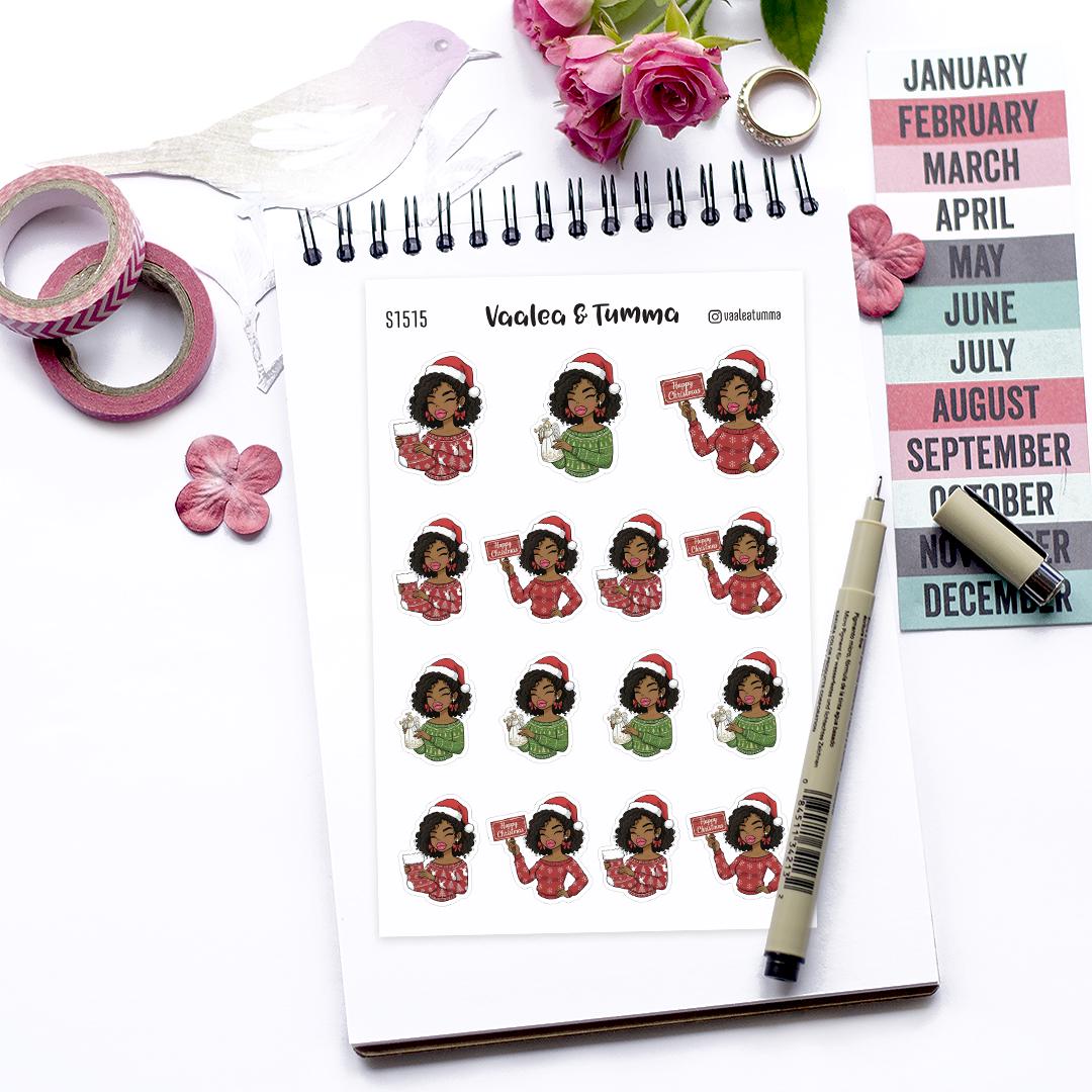 Celebrate the season in style with these Christmas Planner Stickers. Featuring Nia in her festive best — holding a classic holiday stocking and a beautiful Christmas angel - this set brings joy, warmth, and representation to your holiday planning.