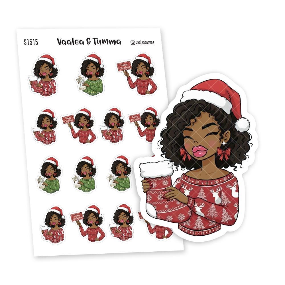 Christmas Planner Stickers, Black Girl Christmas, Holiday Angel Art, Cozy Winter Aesthetic, Stocking Stuffer, December Daily, Xmas Decals, Nia - S1515/S1527