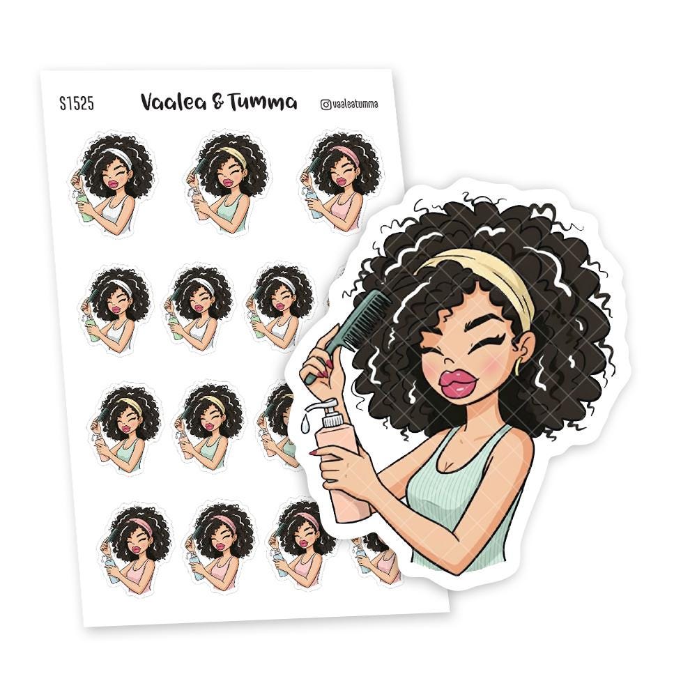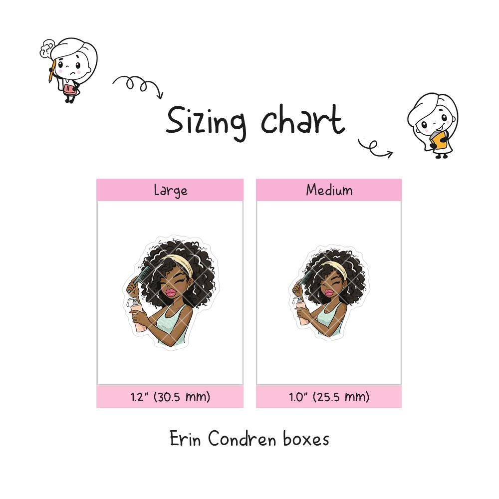Prioritize your hair health and embrace your beautiful crown with these Natural Hair Planner Stickers. Featuring Nia tending to her gorgeous curls, this sheet is perfect for marking your wash days, deep conditioning treatments, and essential styling routines in your planner or beauty journal.