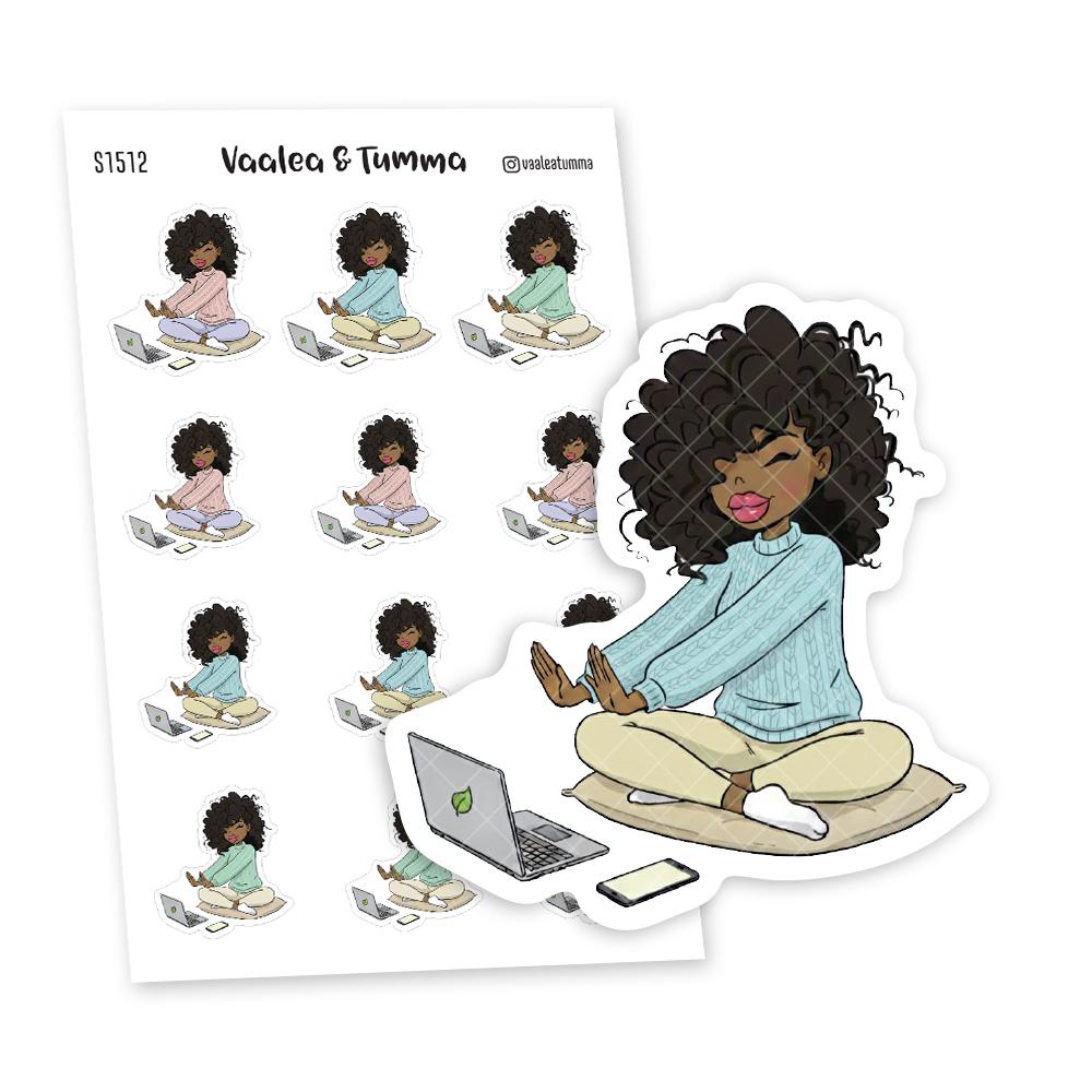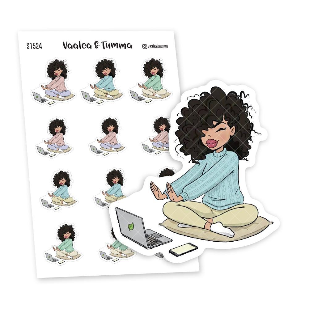 Prioritize your well-being and find balance with these Digital Detox Planner Stickers. Featuring Nia taking a mindful break from her devices, this sheet is perfect for marking your screen-free moments, unplugging days, and focus sessions in your planner or journal.