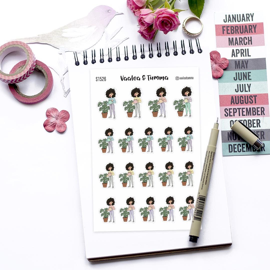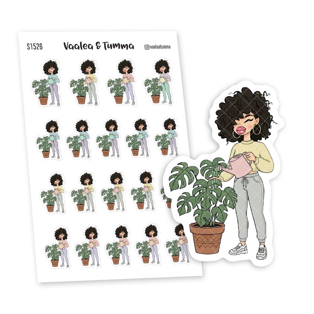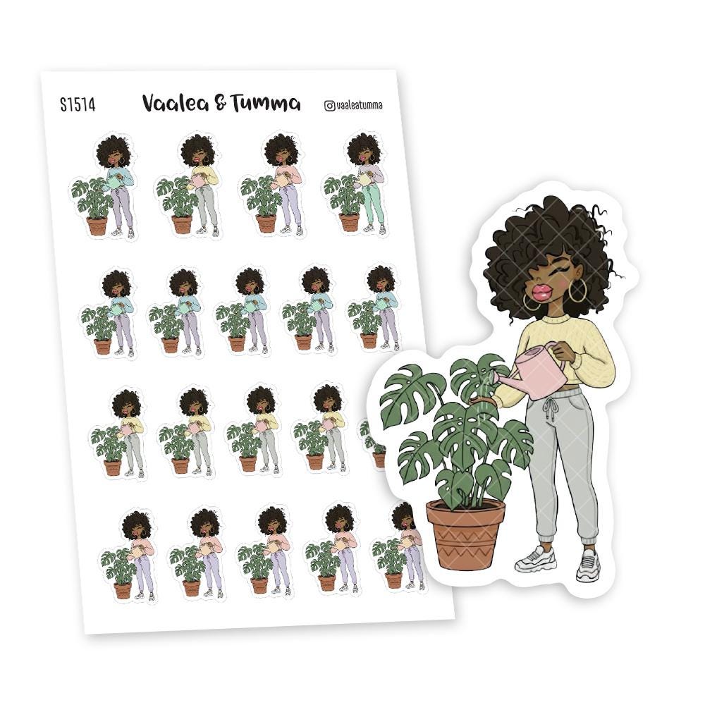 Bring the outside in and keep your leafy friends thriving with these Plant Mom Planner Stickers. Featuring Nia tending to her lush Monstera, this sheet is perfect for marking your watering schedule, fertilizing days, and repotting sessions in your planner or gardening journal.