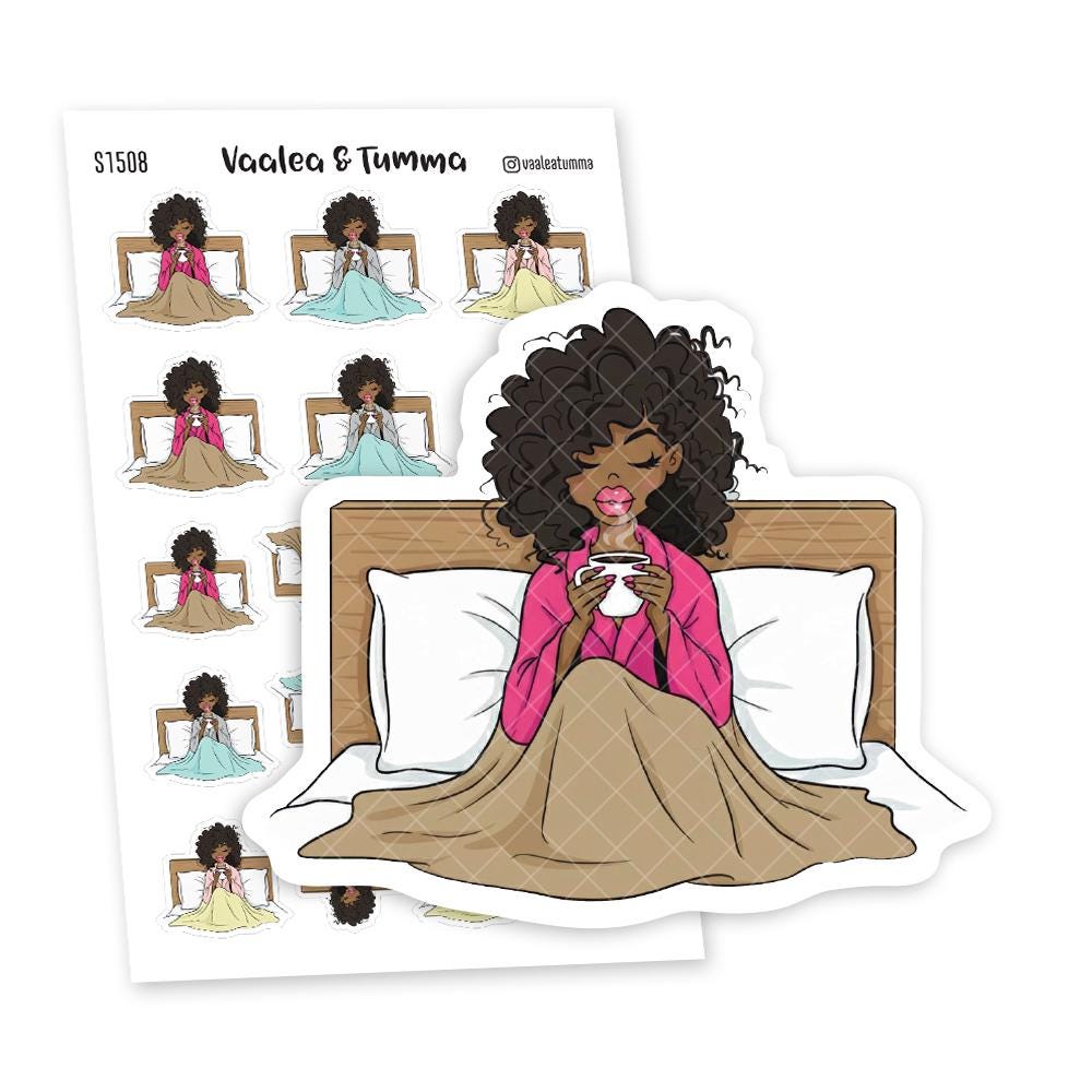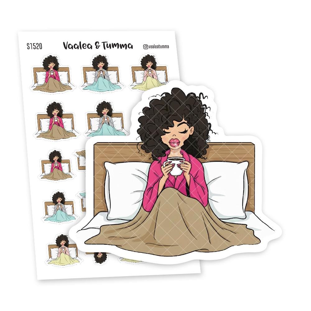 Self Care Planner Stickers, Cozy Morning Coffee, Mental Health Journal, Relaxing Weekend Vibes, Sick Day Sticker Sheet, Nia - S1508/S1520